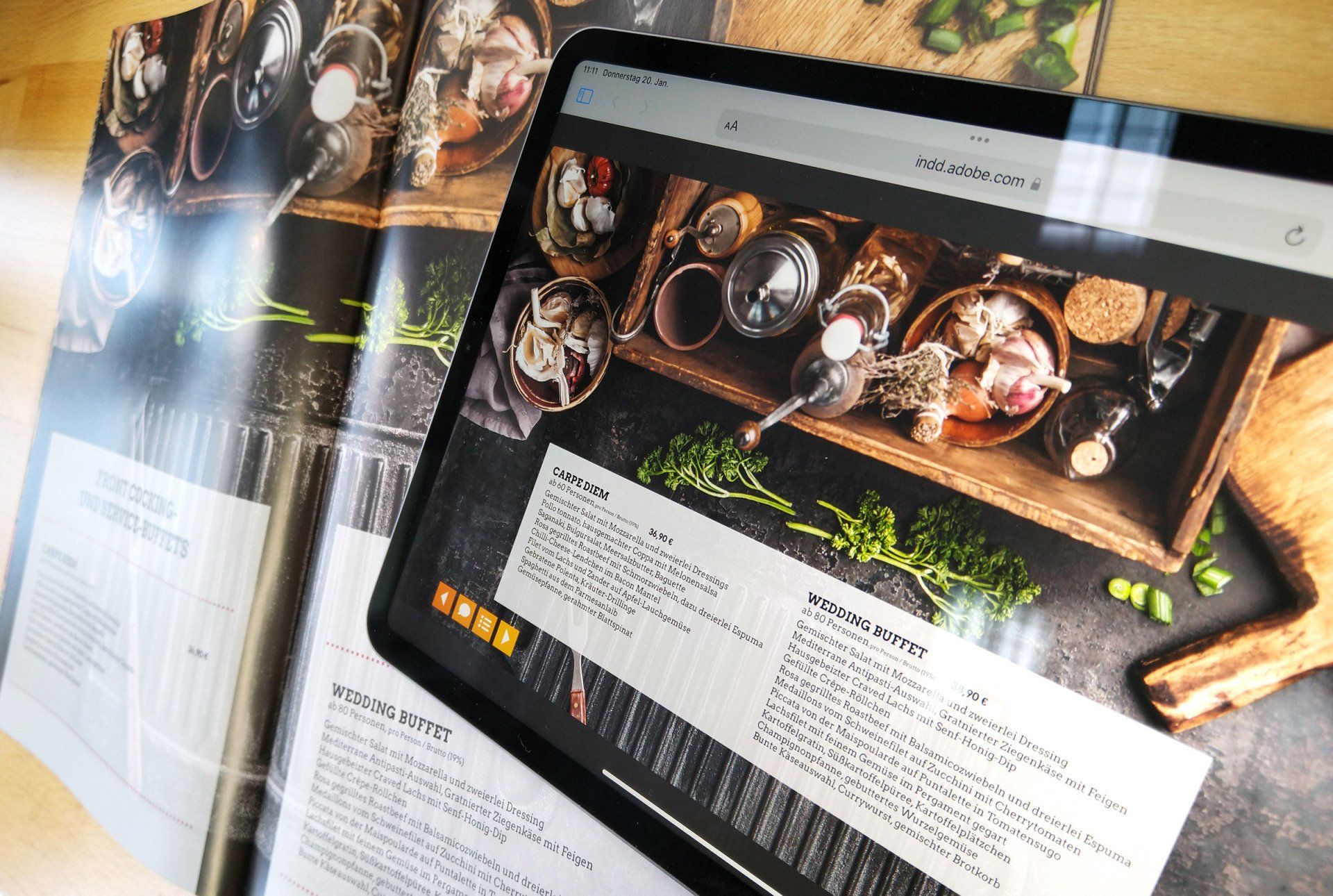 Die Interaktive Speisekarte konnte so nun zum einen auf der Webseite eingebunden werden, so dass Interessierte von zuhause aus darin blättern können. Genauso wie sie Geschäftsinhaber Tim Bleul bei Beratungsgesprächen mit seinen Kunden auf einem großen Monitor gemeinsam ansehen kann.